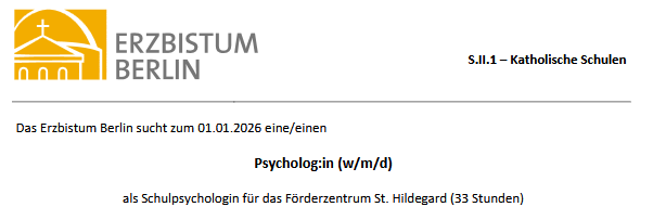 Wir suchen eine Schulpsychologin / einen Schulpsychologen. Details entnehmen Sie bitte der Ausschreibung.
